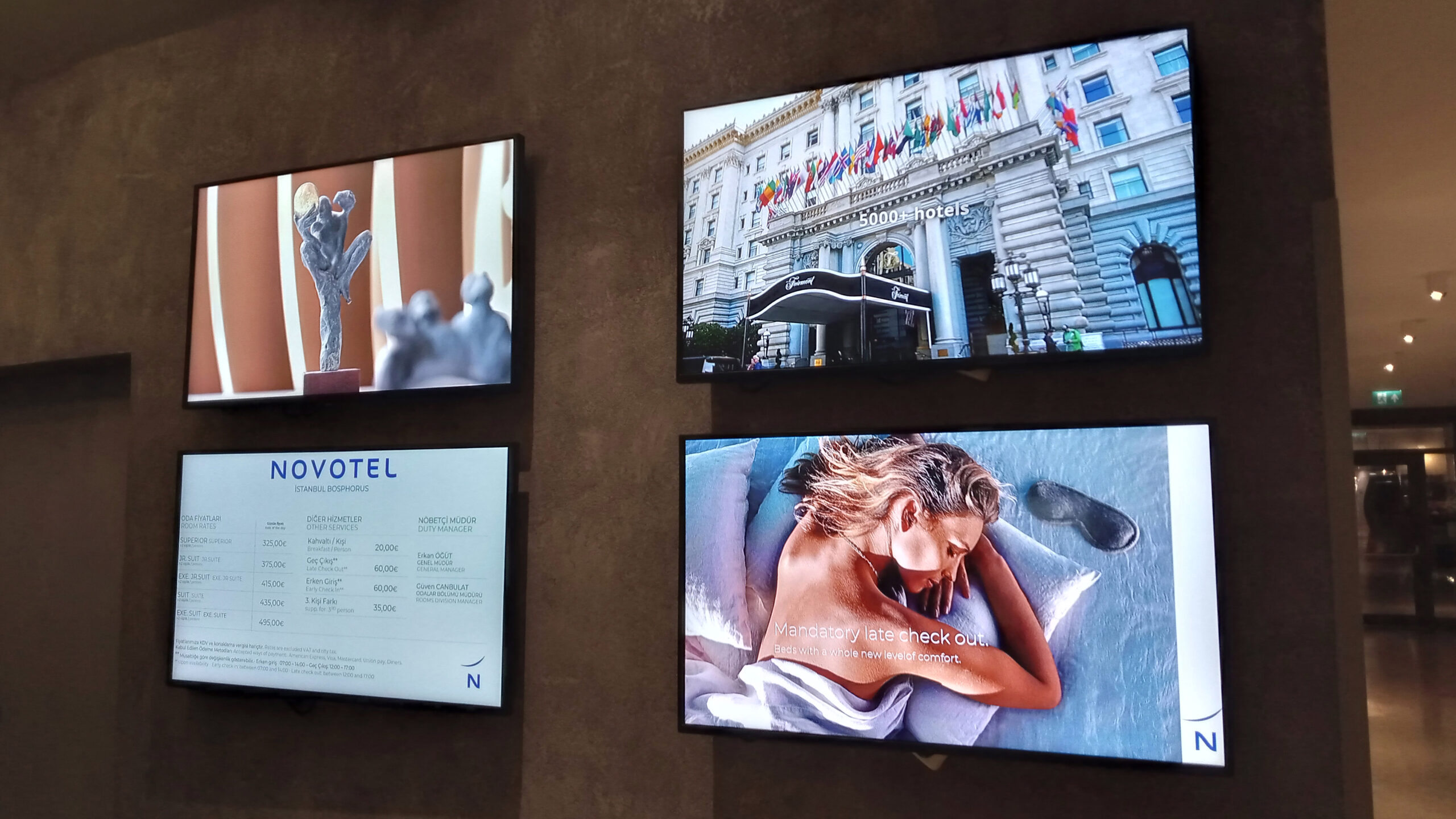 - Kurumsal alanlar: lobiler, resepsiyon, bekleme salonları — tanıtım, kurumsal iletişim, bilgilendirme